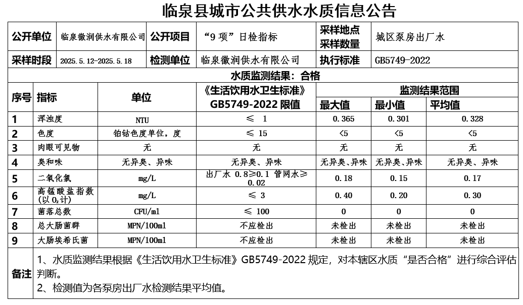 下一条: 临泉县城市公共供水水质信息公告2025年5月上半月(8项)