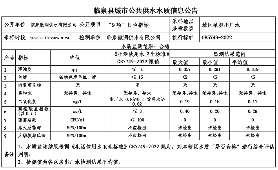 下一条: 临泉县城市公共供水水质信息公告2025年8月11日至2025年8月17日(9项)