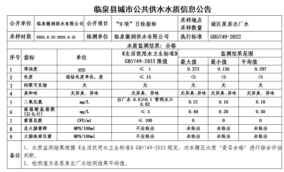 上一条: 临泉县城市公共供水水质信息公告2025年8月下半月(8项)