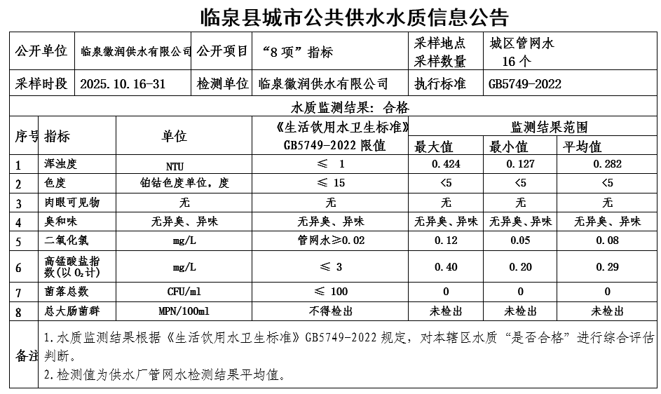 下一条: 临泉县城市公共供水水质信息公告2025年10月27日至2025年11月2日(9项)