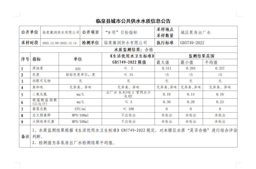 上一条: 临泉县城市公共供水水质信息公告2025年12月上半月(8项)