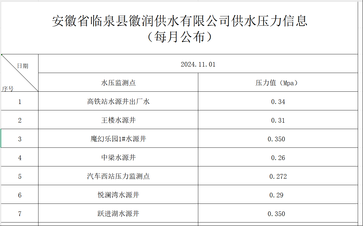下一条: 临泉徽润供水有限公司供水压力信息(2024年10月份)