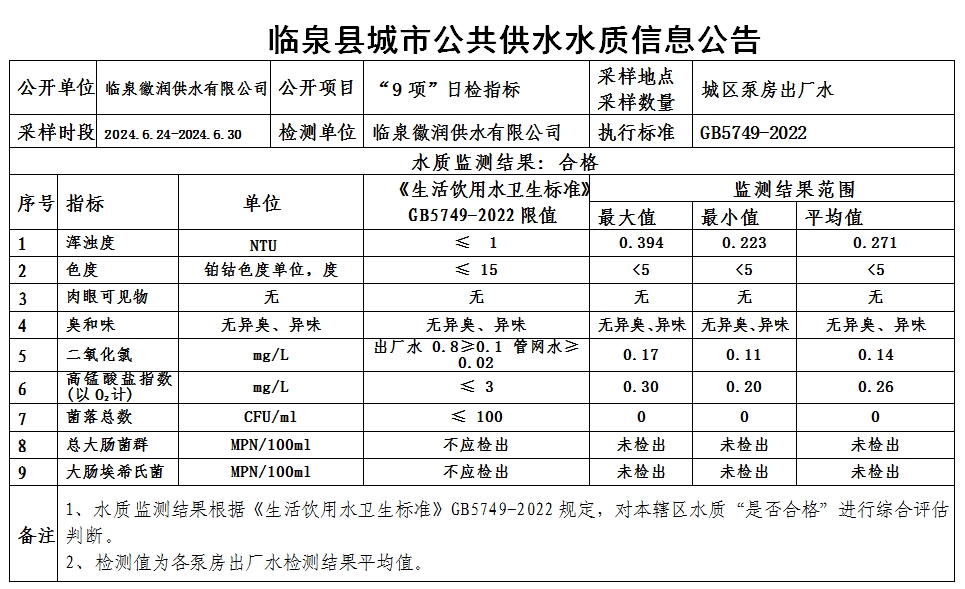 下一条: 临泉县城市公共供水水质信息公告2024年6月17日至2024年6月23日(9项)
