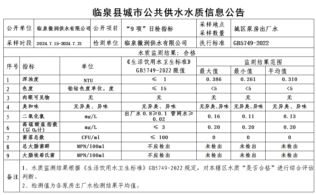 下一条: 2024年度临泉县城市公共供水水质信息公告(97项全分析)