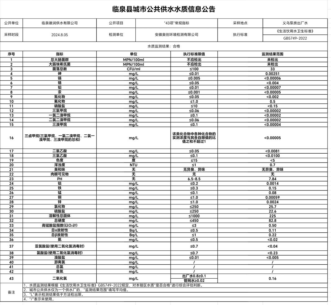 上一条: 临泉县城市公共供水水质信息公告2024年8月19日至2024年8月25日(9项)