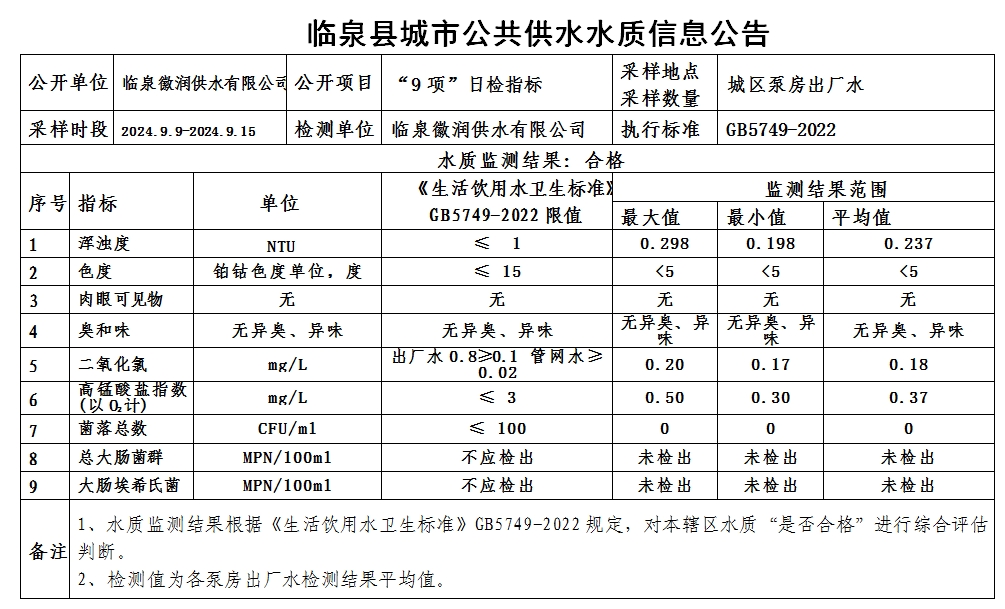 上一条: 临泉县城市公共供水水质信息公告2024年9月上半月(8项)