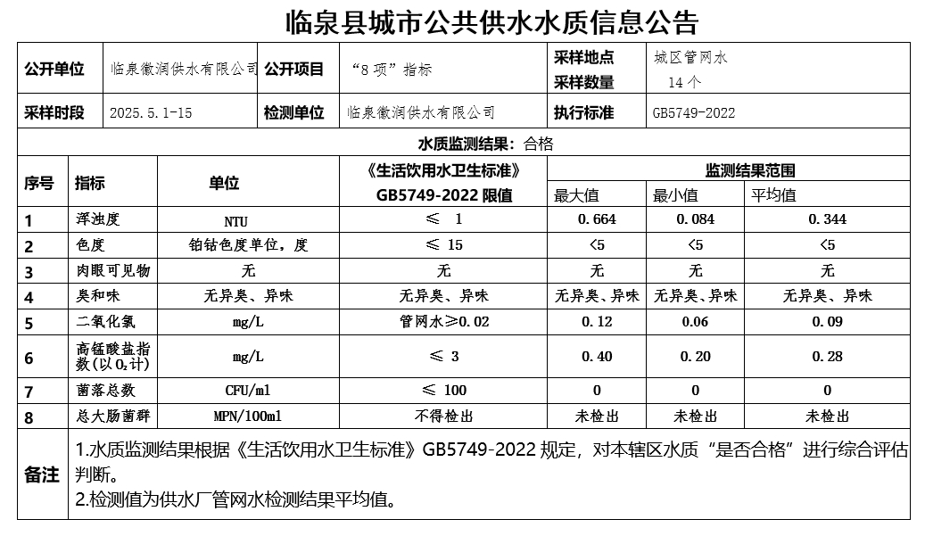 上一条: 临泉县城市公共供水水质信息公告2025年5月12日至2025年5月18日(9项)
