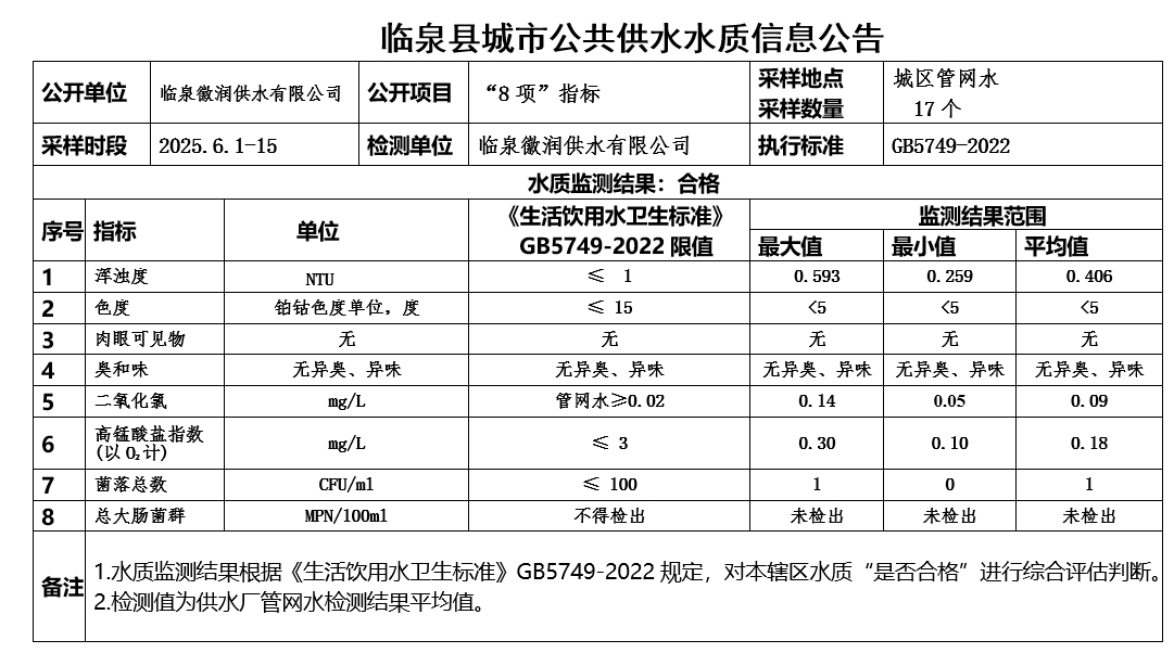 下一条: 临泉县城市公共供水水质信息公告2025年6月9日至2025年6月15日(9项)