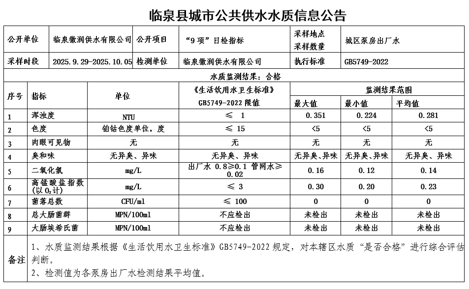 下一条: 临泉县城市公共供水水质信息公告2025年9月下半月(8项)