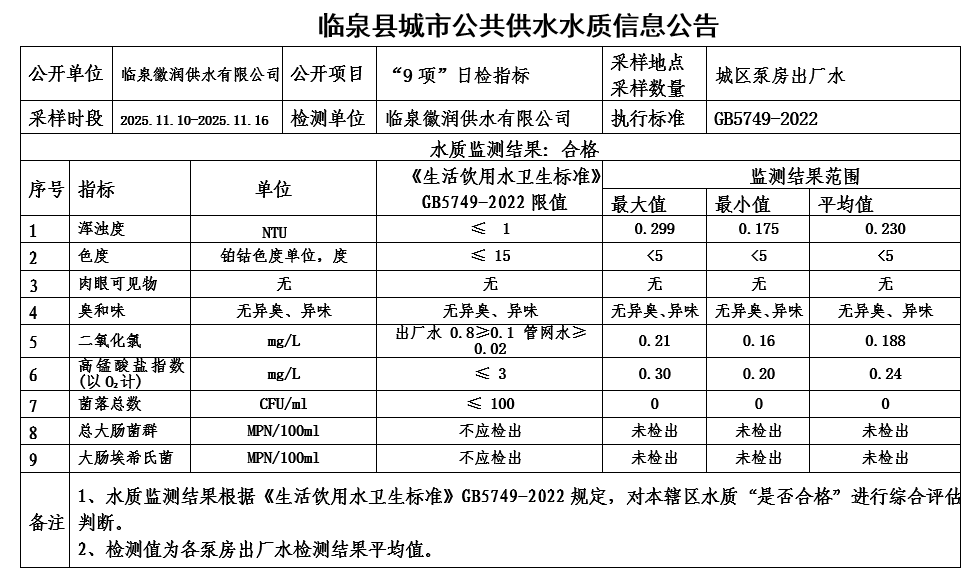 下一条: 临泉县城市公共供水水质信息公告2025年11月3日至2025年11月9日(9项)