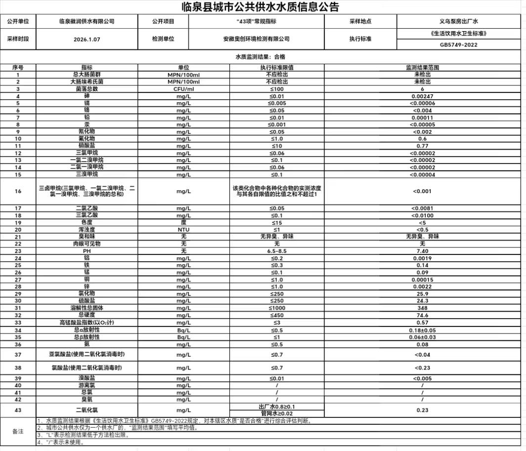 下一条: 临泉县城市公共供水水质信息公告2026年1月12日至2026年1月18日(9项)
