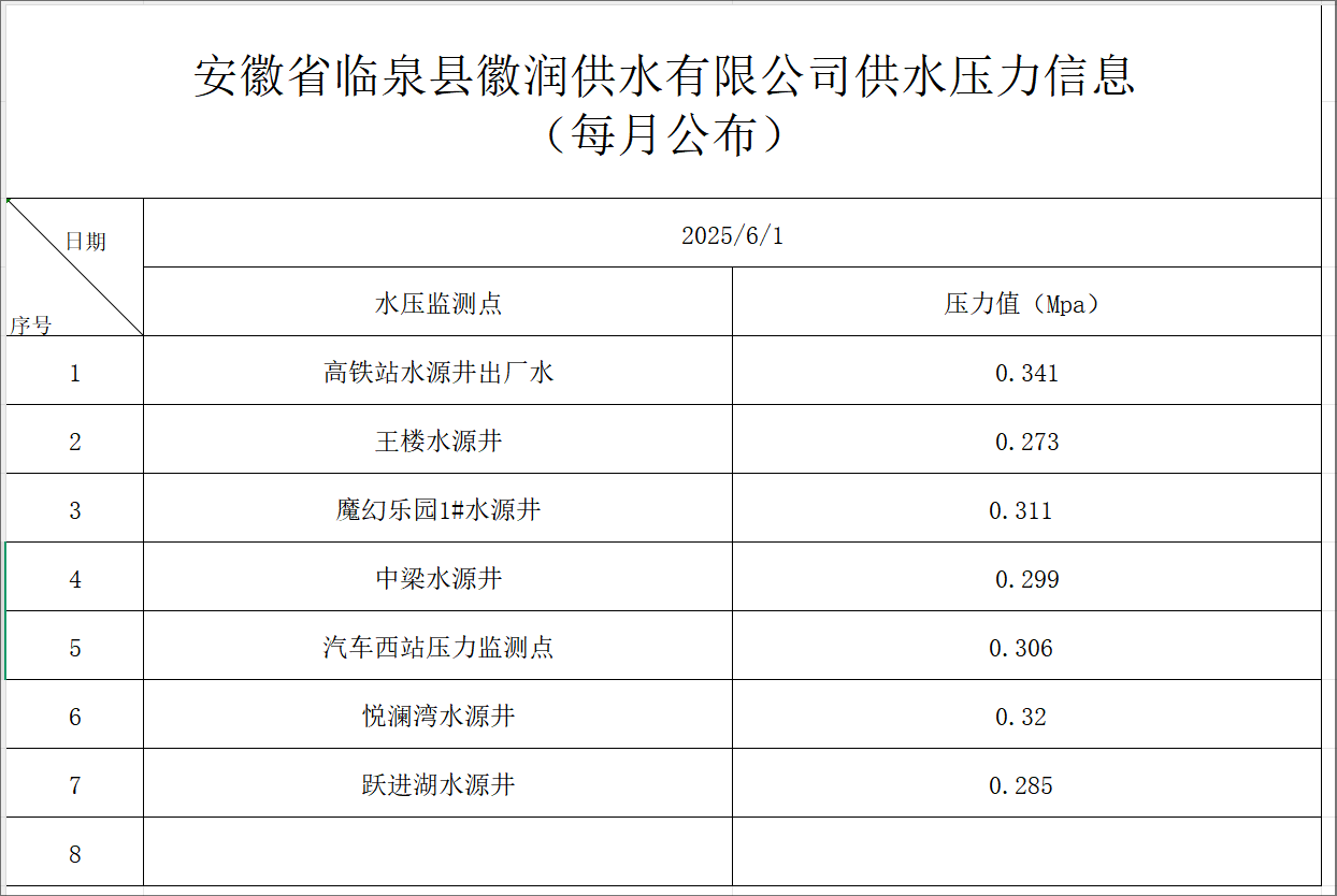 下一条: 临泉徽润供水有限公司供水压力信息(2025年5月份)