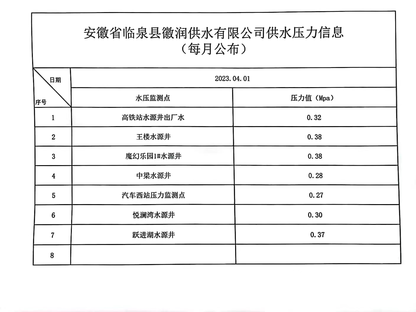 上一条: 临泉徽润供水有限公司供水压力信息(2023年5月份)