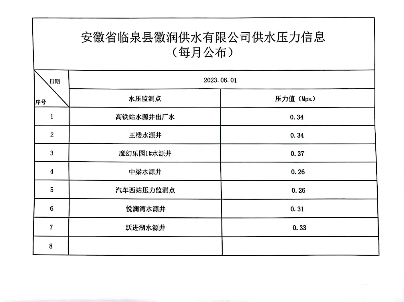 上一条: 临泉徽润供水有限公司供水压力信息(2023年7月份)