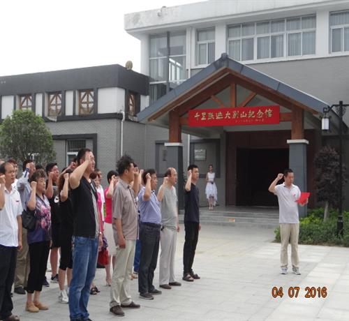 2016年7月4日下午,法人代表杨建华同志、支部书记韦和平同志带领全厂40余名党员来到“刘邓大军千里挺进大别山纪念馆”,大家首先向英雄纪念碑敬献了花篮,并举行了重温入党誓词活动。