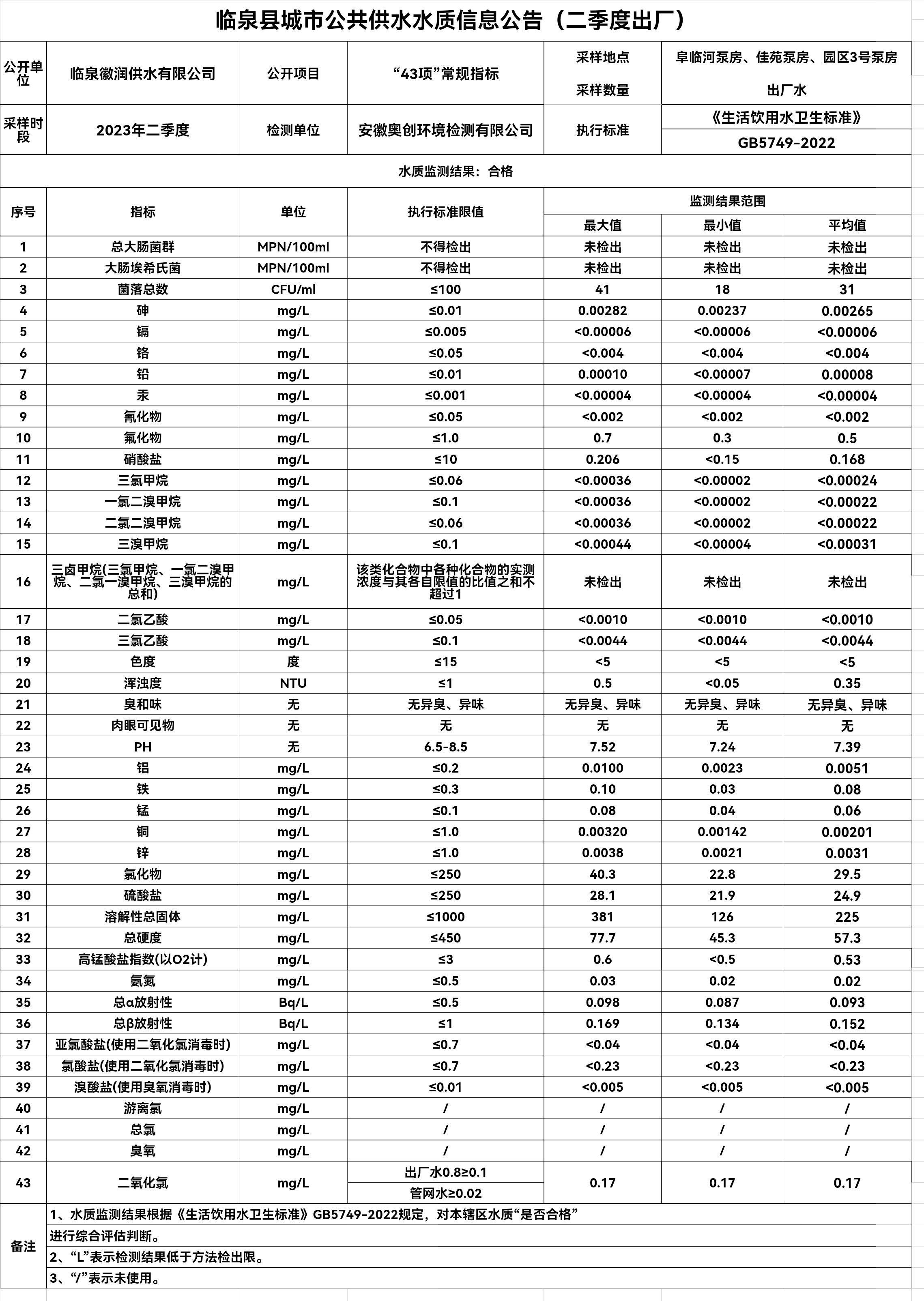 下一条: 临泉县城市公共供水水质信息公告2023年7月(43项)