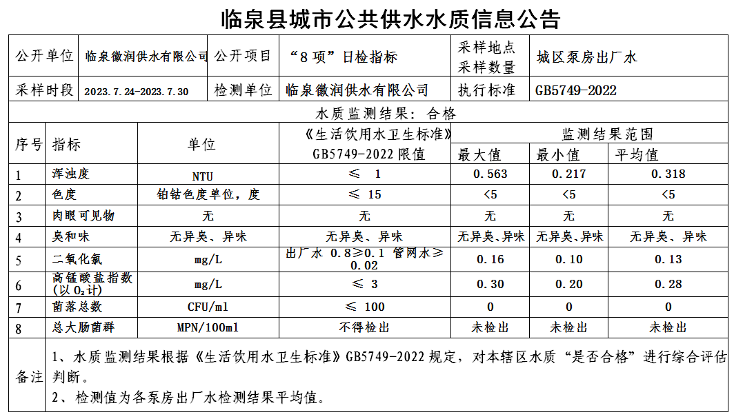 上一条: 临泉县城市公共供水水质信息公告2023年7月下半月(7项)