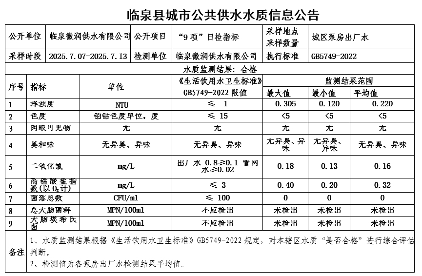 下一条: 临泉县城市公共供水水质信息公告2025年6月30日至2025年7月6日(9项)