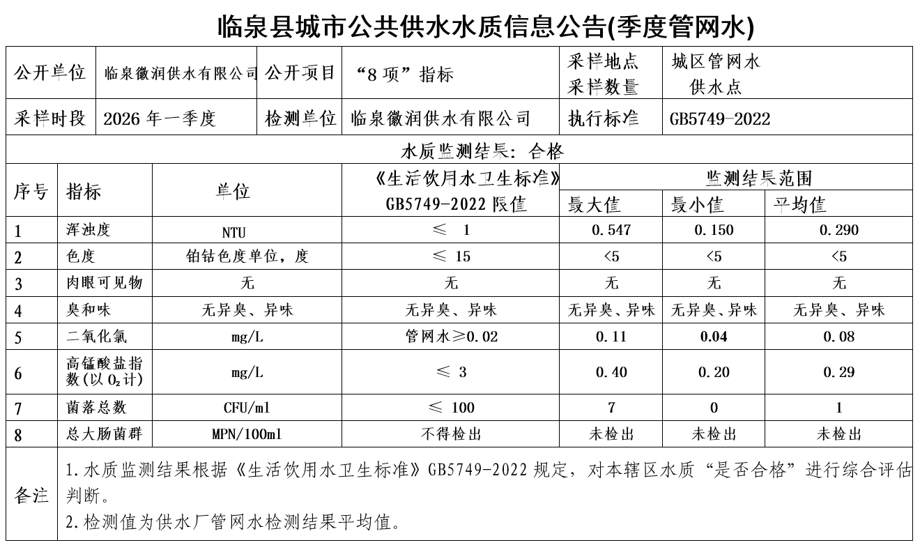 上一条: 临泉县城市公共供水水质信息公告(2026年第一季度出厂水)