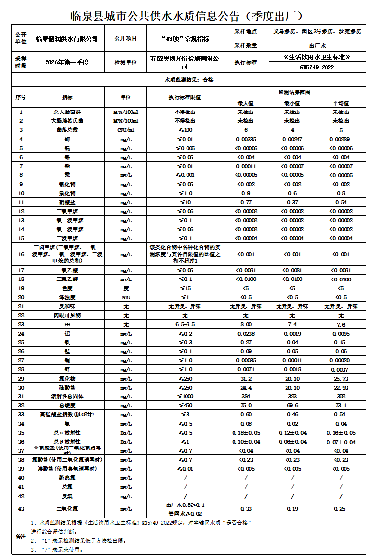 下一条: 临泉县城市公共供水水质信息公告(2026年第一季度管网水)