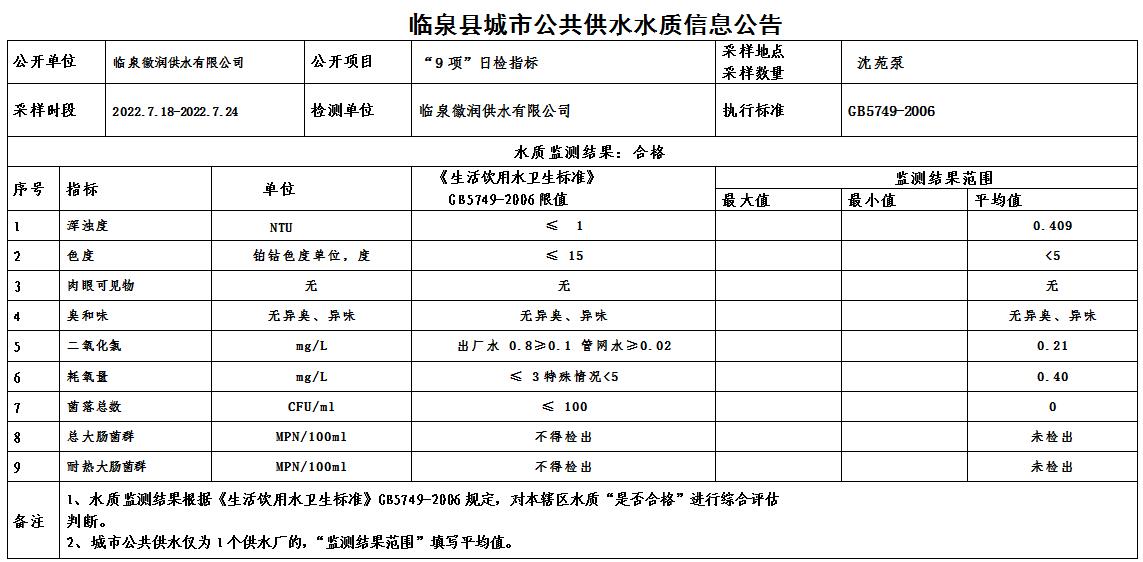 下一条: 2022年7月25日至2022年7月31日临泉县城市公共供水水质信息公告(9项)