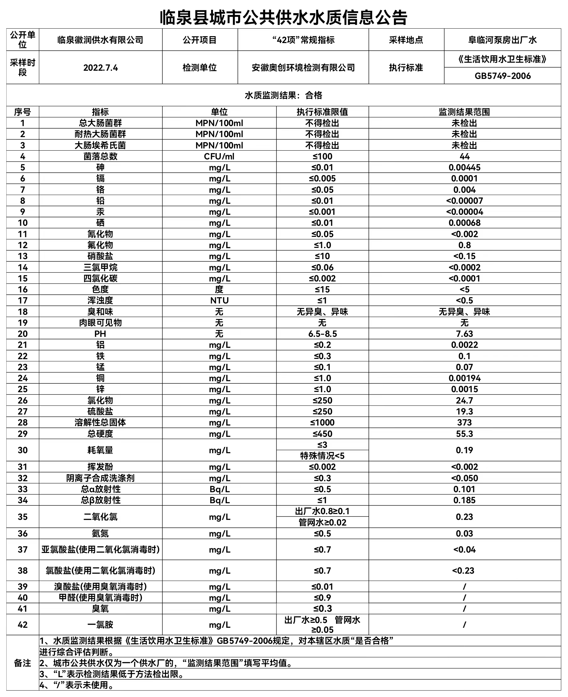 下一条: 2022年7月18日至2022年7月24日临泉县城市公共供水水质信息公告(9项)