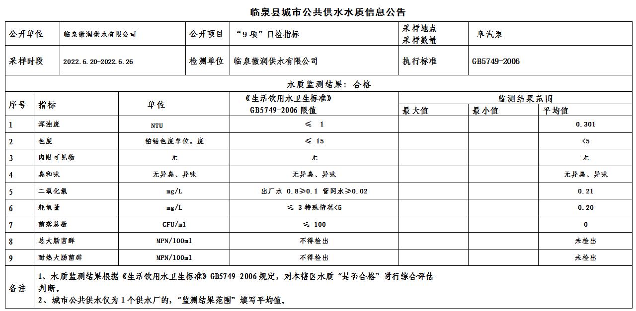 下一条: 2022年6月27日至2022年7月3日临泉县城市公共供水水质信息公告(9项)