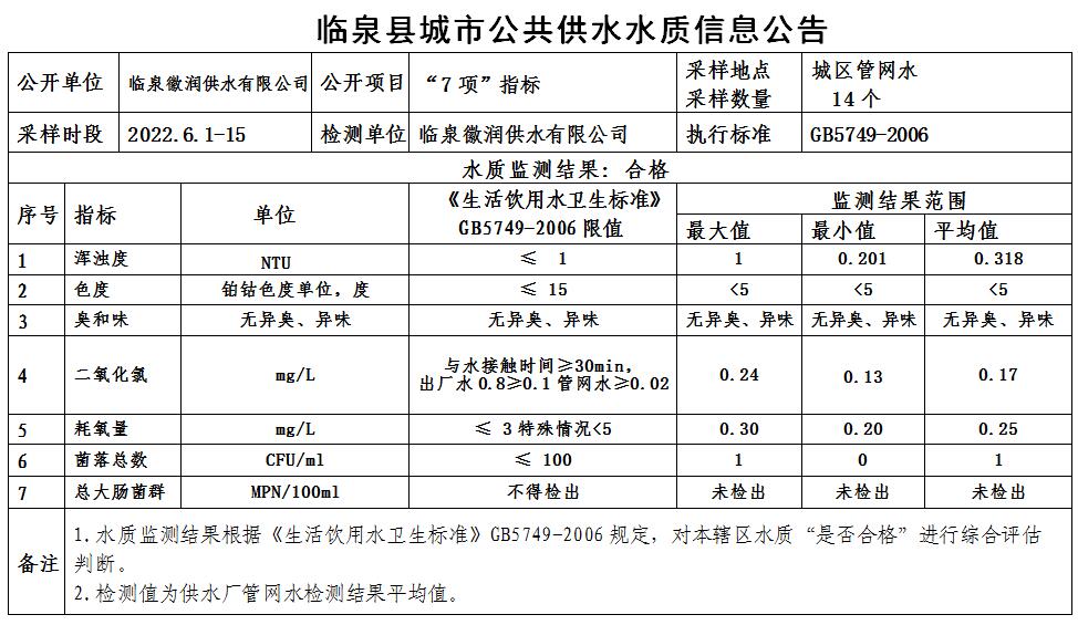 下一条: 2022年6月20日至2022年6月26日临泉县城市公共供水水质信息公告(9项)