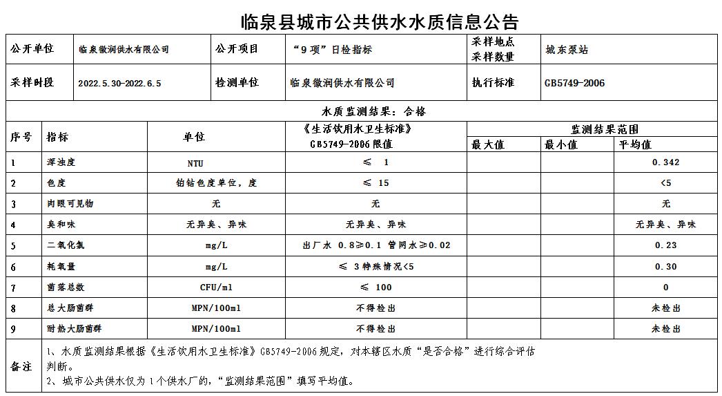 下一条: 2022年6月6日至2022年6月12日临泉县城市公共供水水质信息公告(9项)