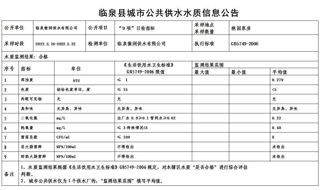 上一条: 2022年5月1日至2022年5月15日临泉县城市公共供水水质信息公告(7项)