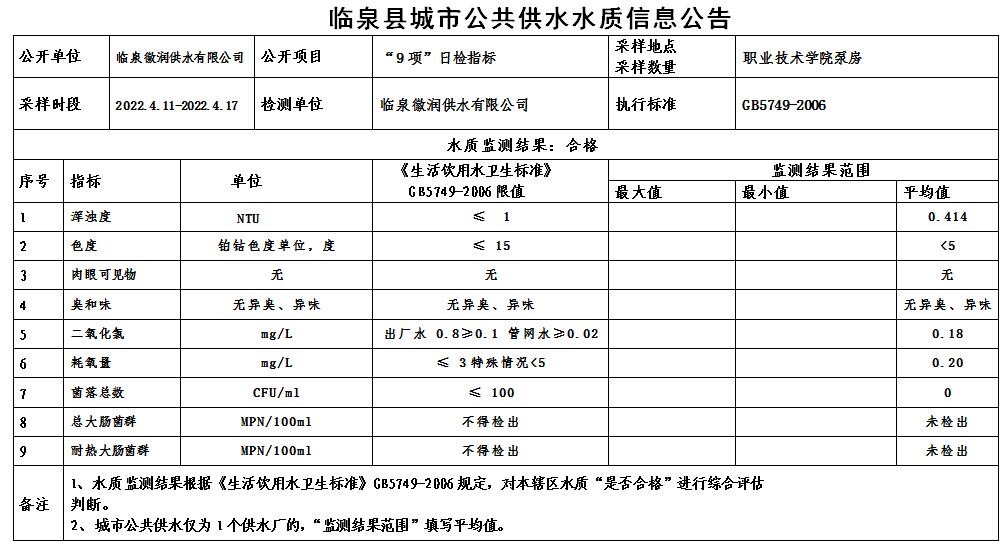 下一条: 2022年4月1日至2022年4月15日临泉县城市公共供水水质信息公告(7项)