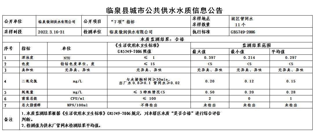 下一条: 2022年3月28日至2022年4月3日临泉县城市公共供水水质信息公告(9项)