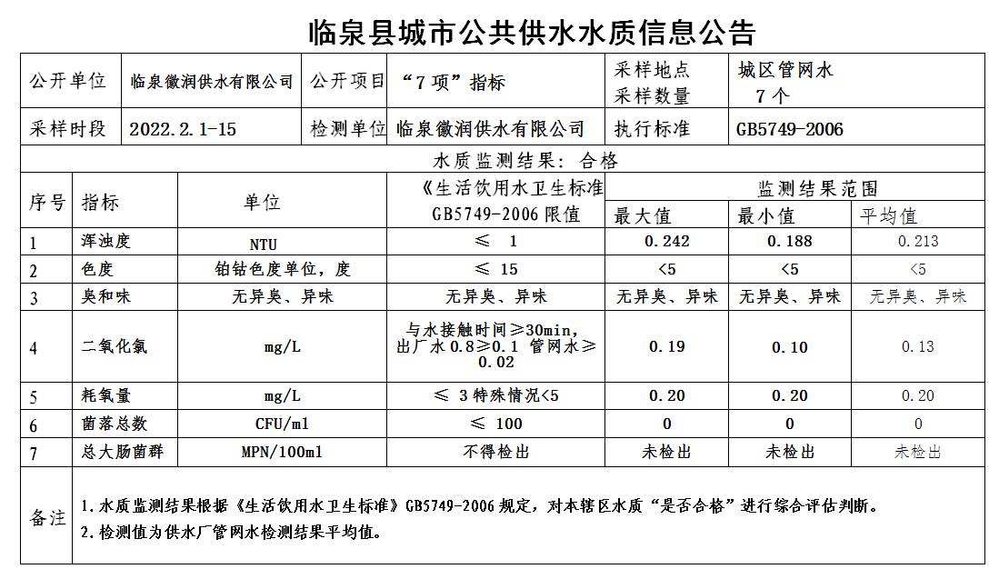 下一条: 2022年2月21日至2022年2月27日临泉县城市公共供水水质信息公告(9项)