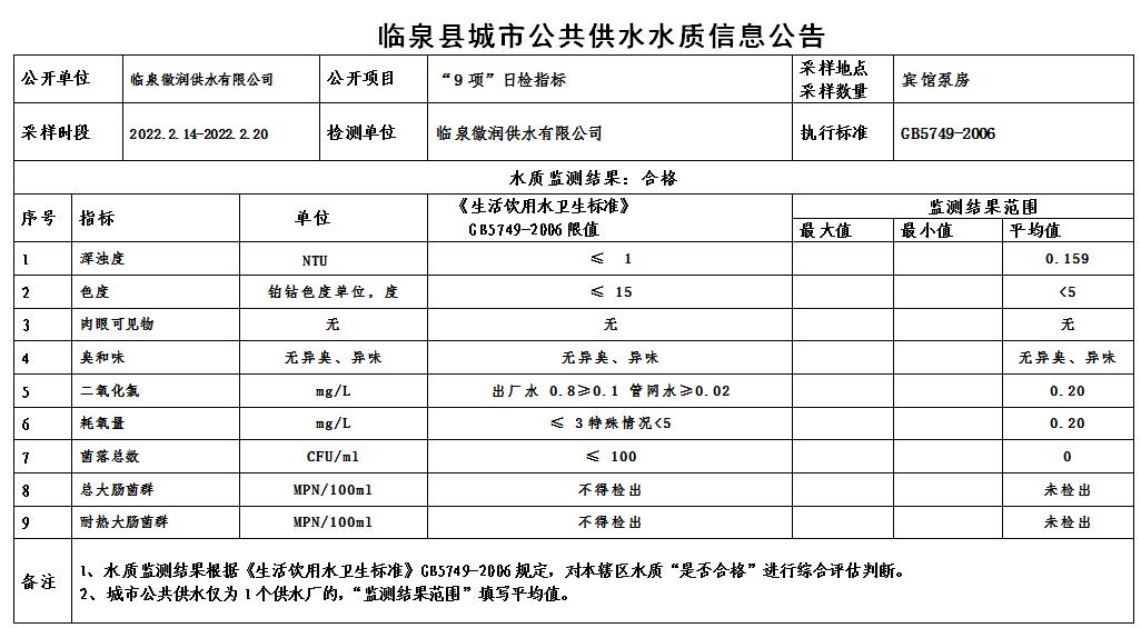 下一条: 2022年2月1日至2022年2月15日临泉县城市公共供水水质信息公告(7项)