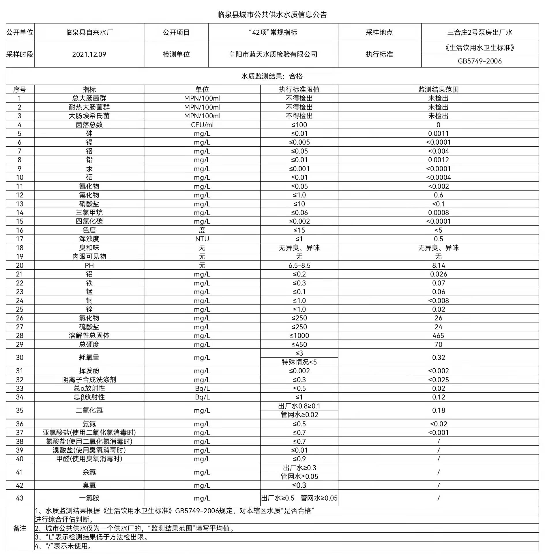 下一条: 2021年12月27日至2022年1月2日临泉县城市公共供水水质信息公告(9项)
