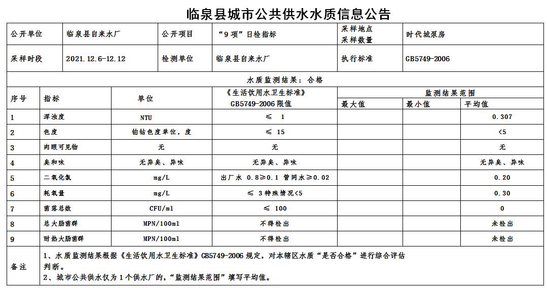 下一条: 2021年12月13日至12月19日临泉县城市公共供水水质信息公告(9项)