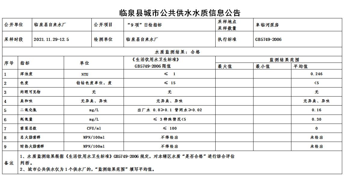 下一条: 2021年11月16日至11月30日临泉县城市公共供水水质信息公告(7项)