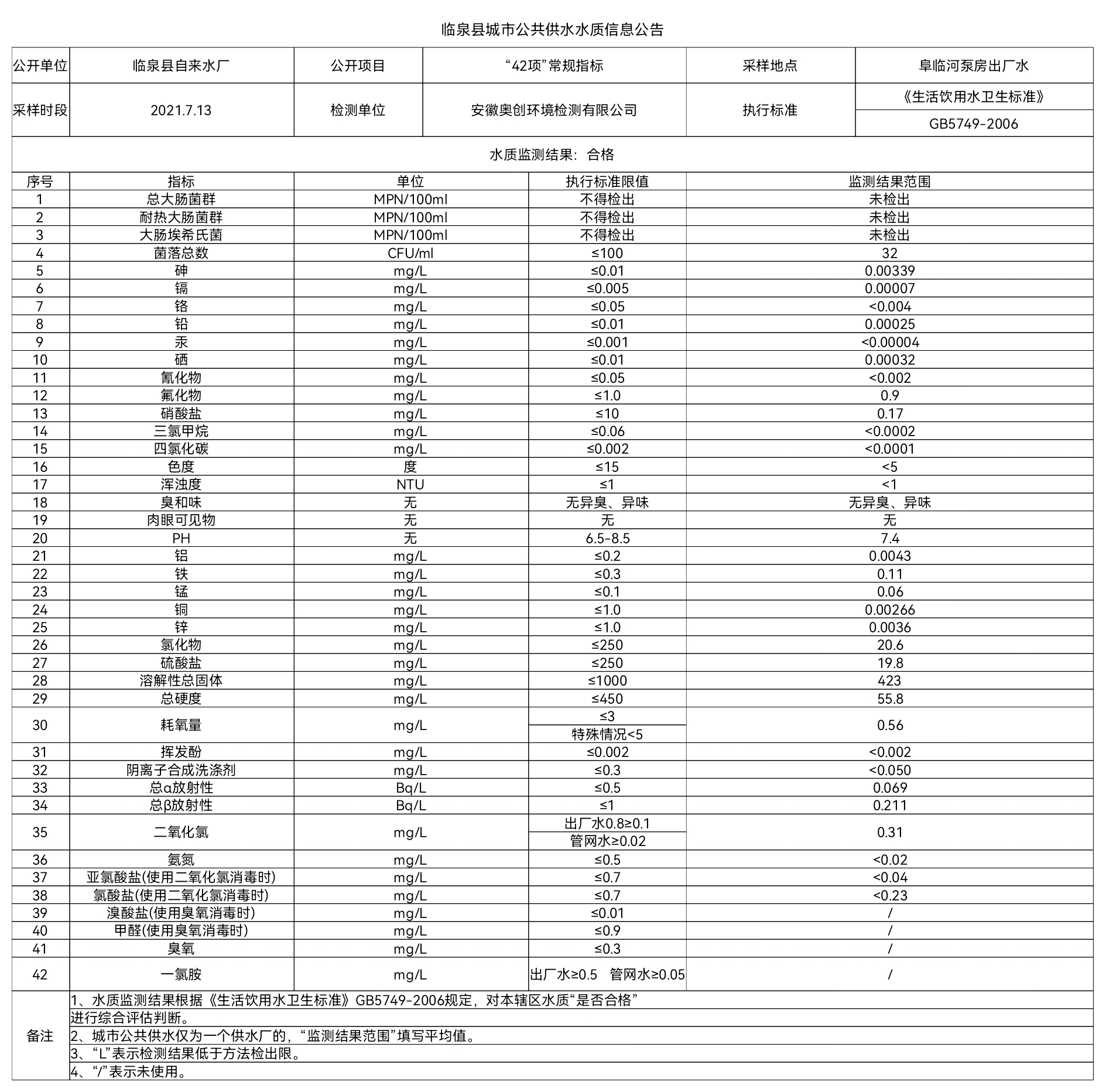 下一条: 2021年8月2日至8月8日临泉县城市公共供水水质信息公告(9项)