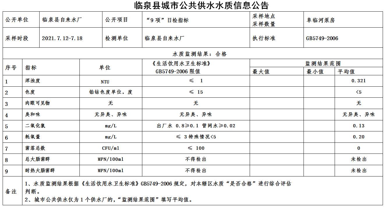下一条: 2021年7月1日至7月15日临泉县城市公共供水水质信息公告(9项)