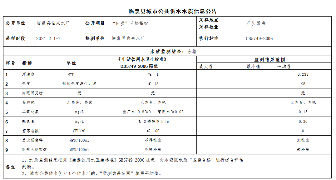 上一条: 2021年1月25日—31日临泉县城区水质公告