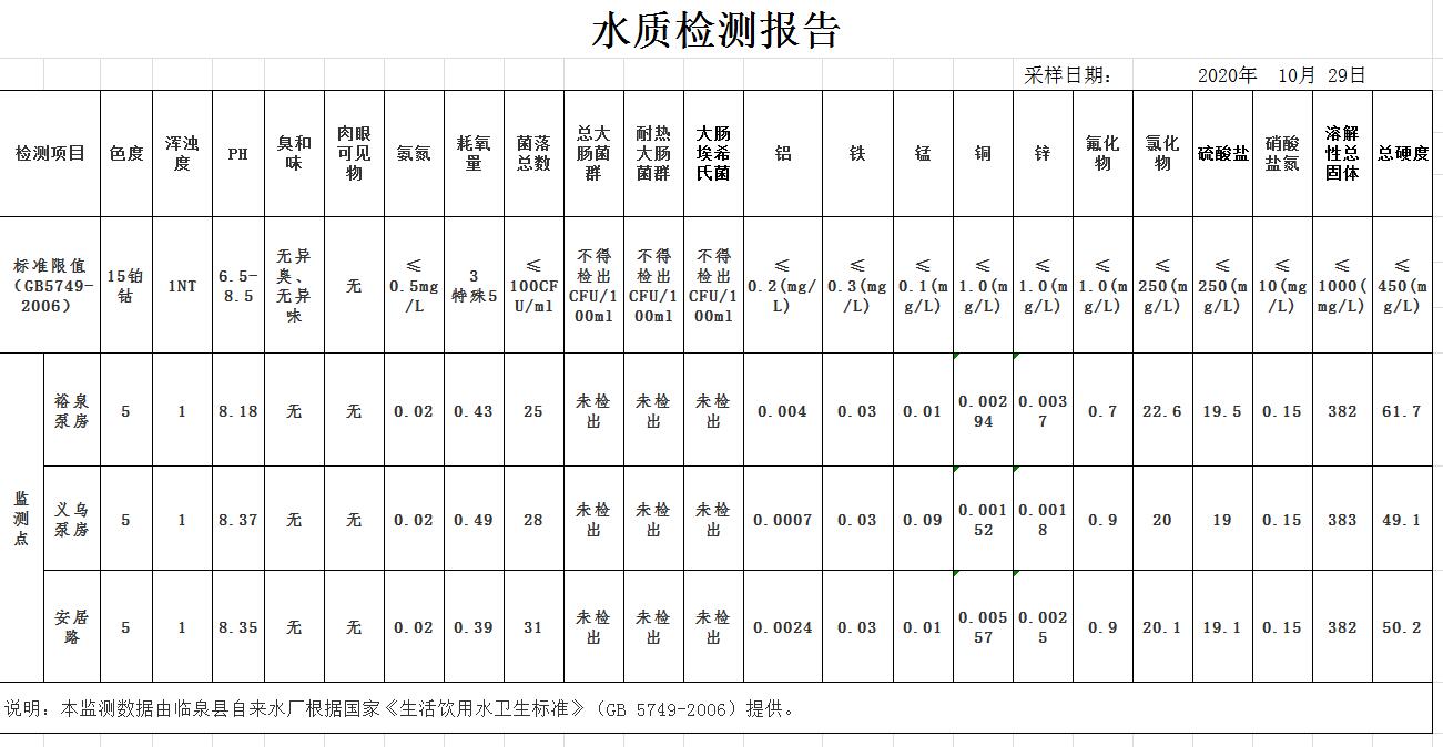 2020年10月水质报告