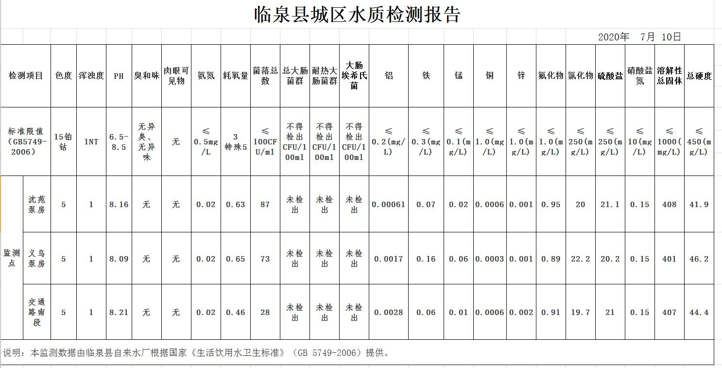 2020年7月水质报告