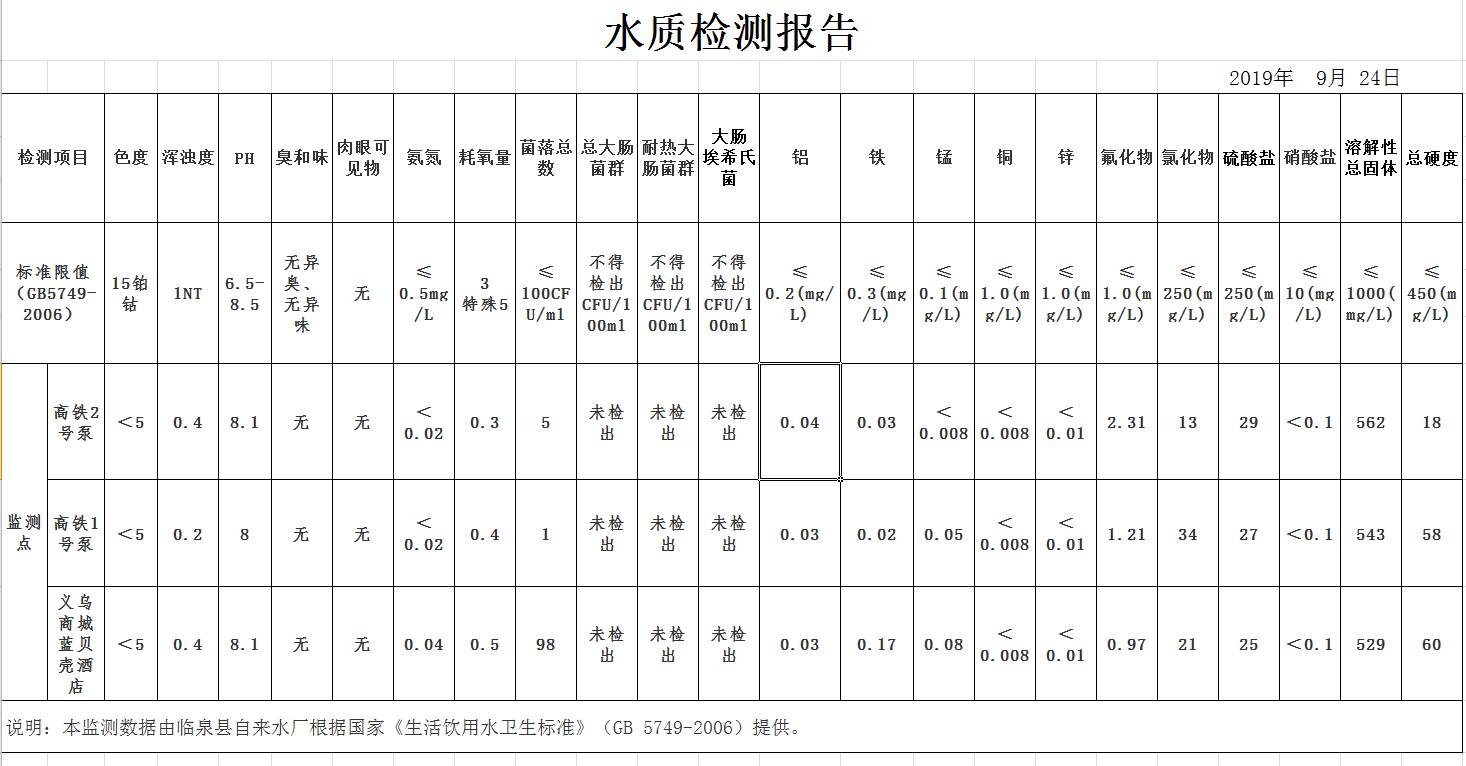 2019年9月份水质检测报告