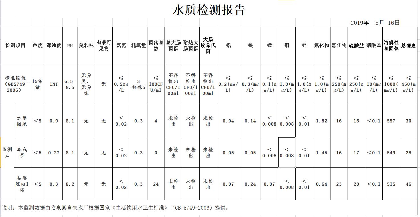 2019年8月份水质检测报告