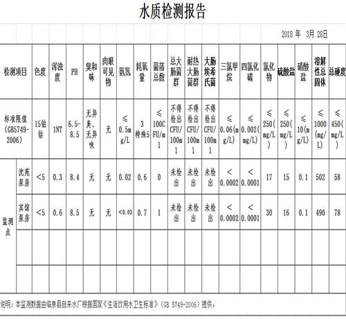 2018年3月水质检测报告