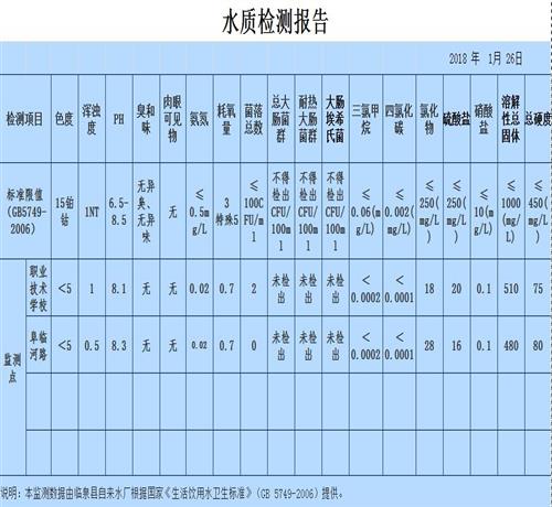 2018年1月水质检测报告