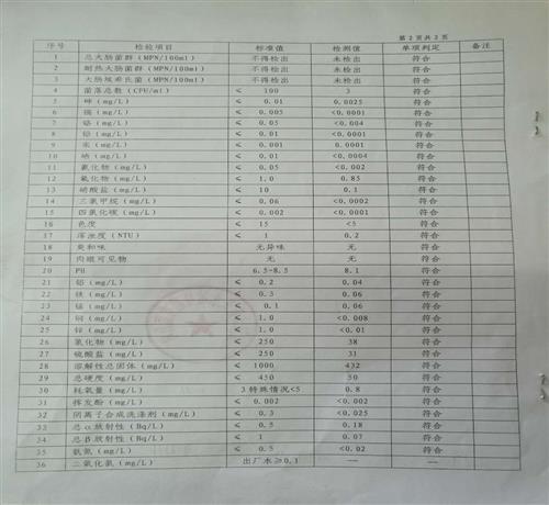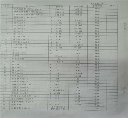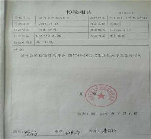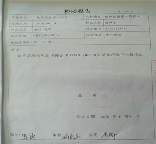 2016年6月份水质检测报告