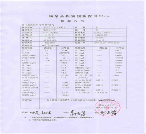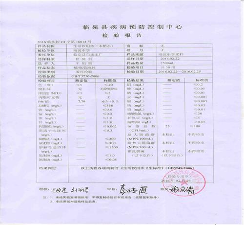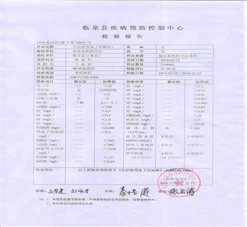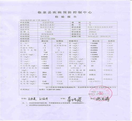 2016年2月份水质检测报告