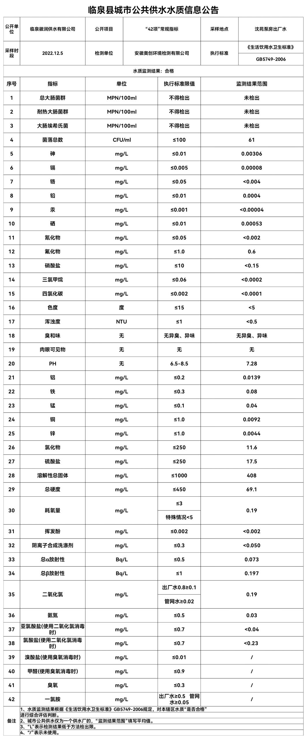 下一条: 2022年11月28日至2022年12月4日临泉县城市公共供水水质信息公告(9项)