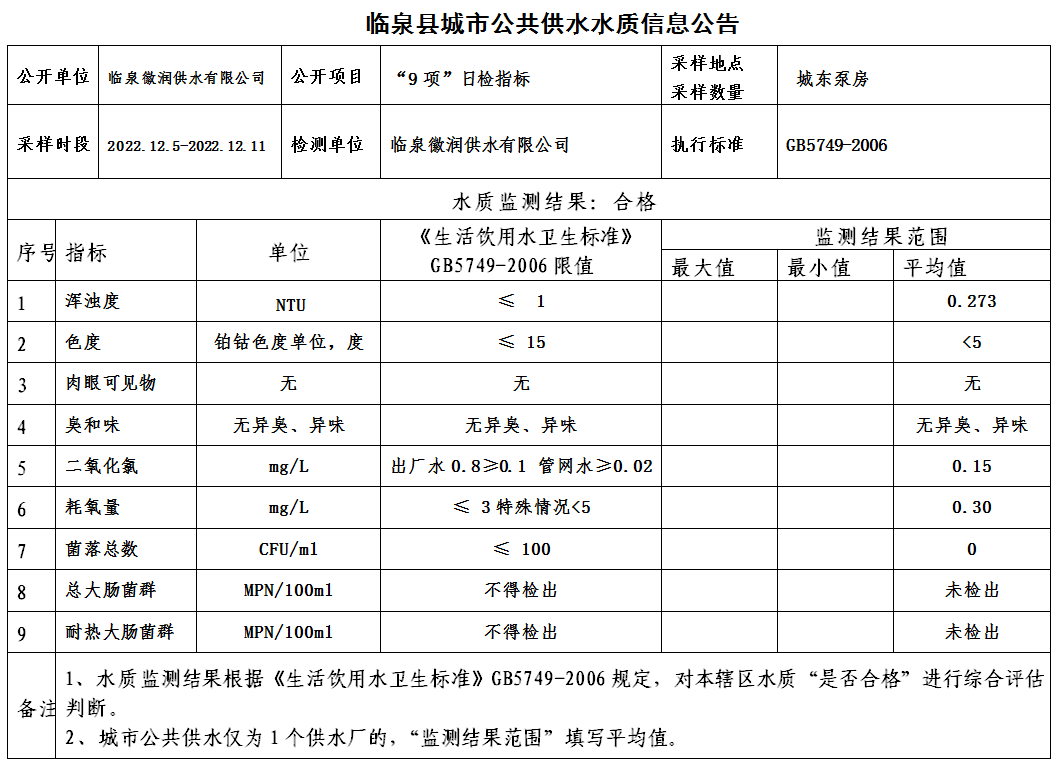 下一条: 2022年12月临泉县城市公共供水水质信息公告(42项)